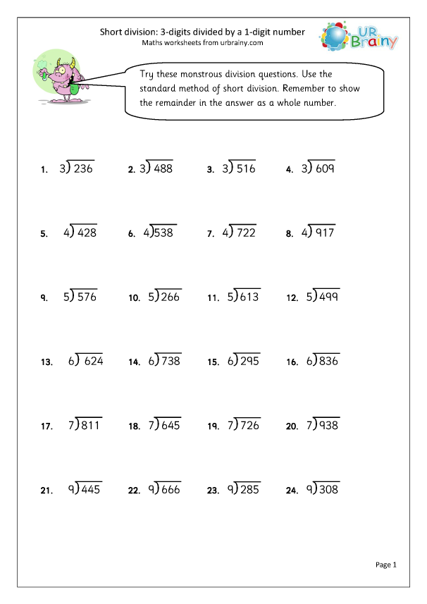 | 1.14 Dividing a 3-Digit Number by a 1-Digit Number (قسمة عدد من ثلاثة أرقام على عدد من رقم واحد) English Arabic Worksheets 1.14 dividing 3 digits by 1 |