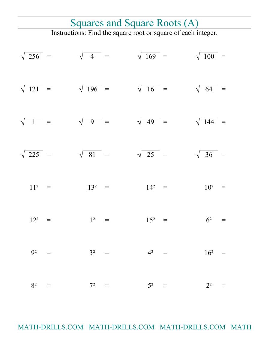 | 1.1 Squares and Square Roots مربعات الأعداد والجذور التربيعية English Arabic Worksheets 1.1 Squares and Square roots |