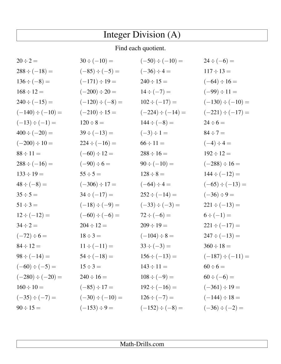 | 2.2 Using Models to Divide Integers قسمة الأعداد الصحيحة English Arabic Worksheets 2.2 Using Models to Divide Integers |