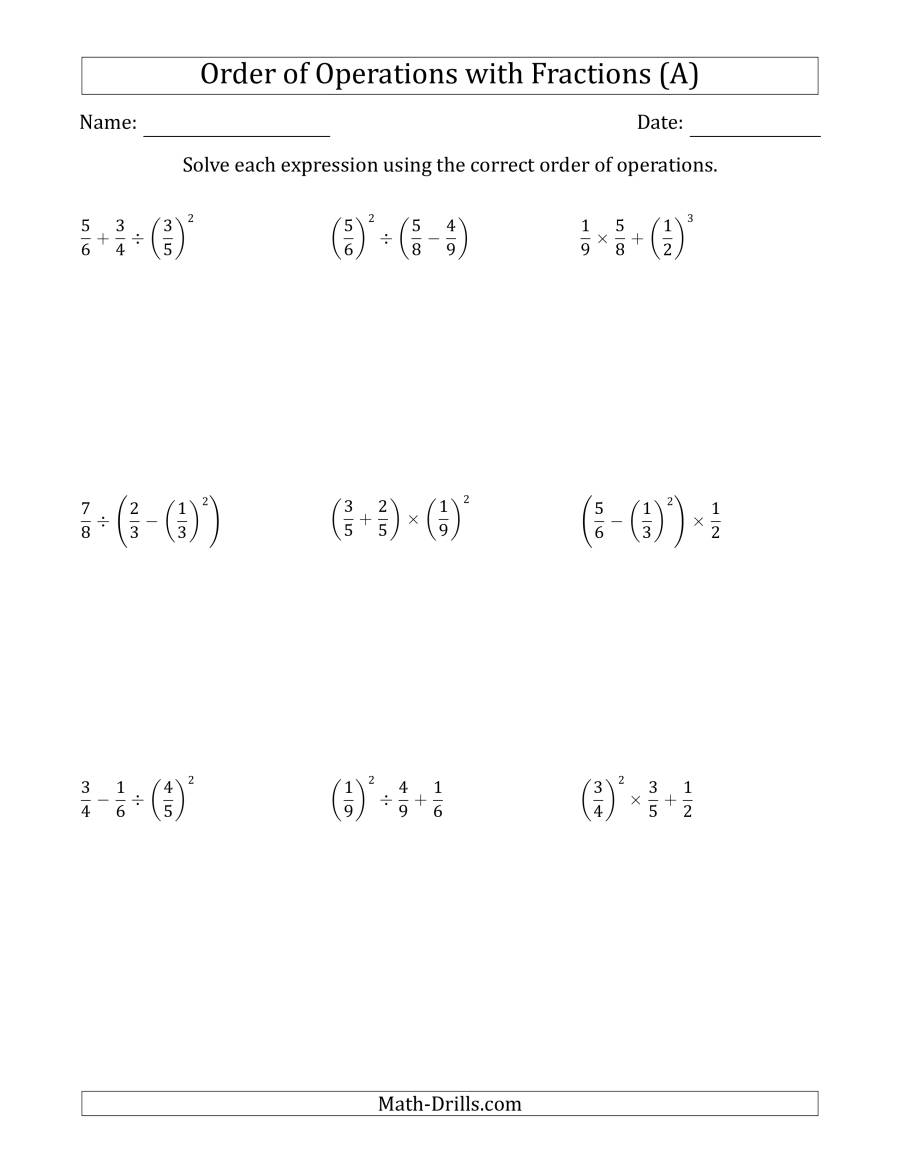 | 3.7 Order of Operations with Fractions ترتيب العمليات الحسابية في الكسور English Arabic Worksheets 3.7 Order of Operations with Fractions |