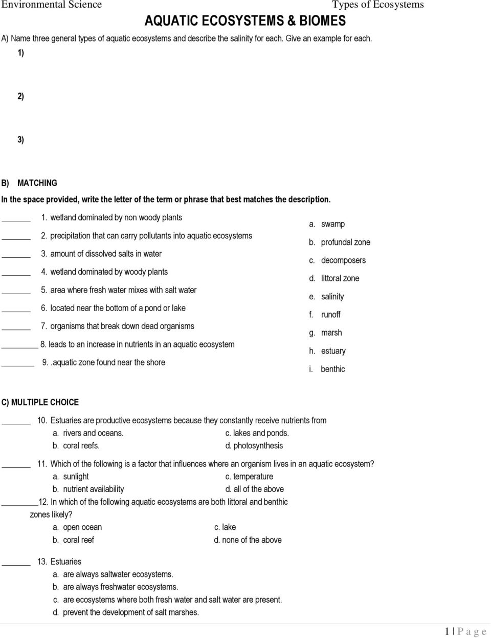 | 2.10 Major Aquatic Ecosystems النظم الإيكولوجية المائية English Arabic Worksheets 2.10 Aquatic ecosystems 2.10 Aquatic ecosystems |